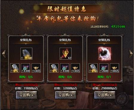 活动说明:活动期间将上架各种骨折特惠礼包供玩家购买。