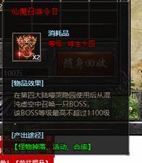 仙魔召唤令现更改为只能在嚎哭隐园中使用,嚎哭隐园位于仙魔之境中。
