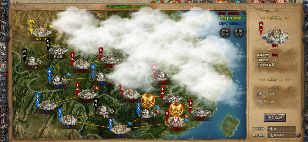 ④行军目的地为友方城池时,行军消耗减少10%