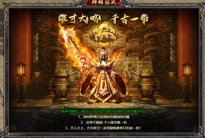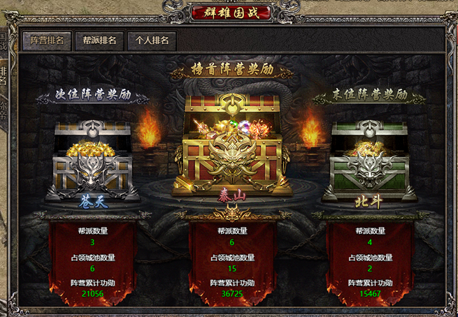 ②诸侯排名:己方阵营内帮派的排名,以功勋值大小为排名条件,前10名帮派可获得更好的赛季奖励;