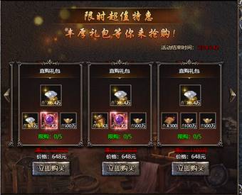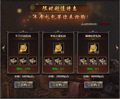活动说明:活动期间将会上架各种特惠直购礼包供玩家购买。