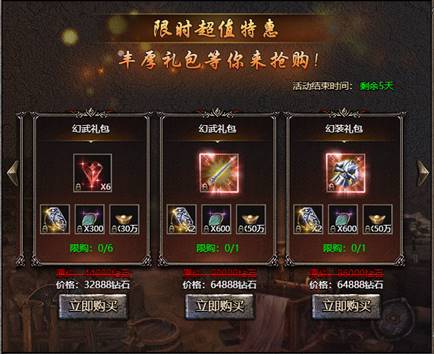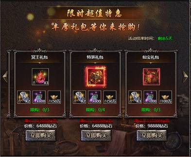 活动说明:活动期间将上架各种骨折特惠礼包供玩家购买。