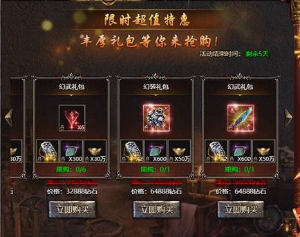活动说明:活动期间将上架各种骨折特惠礼包供玩家购买。