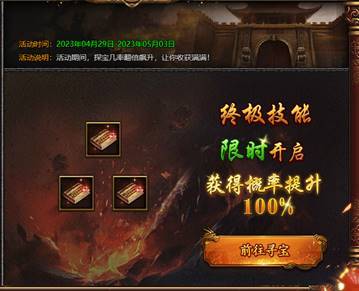 活动说明:活动期间探宝几率提升,终极技能获得概率提升。
