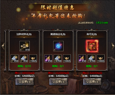 活动说明:活动期间将会上架各种特惠直购礼包供玩家购买。